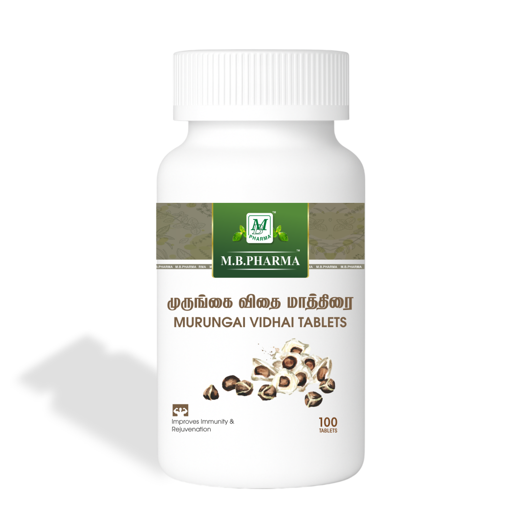 M.B. Pharma Murungai Vidhai Tablets – Herbal tablets made from the powder of the seeds of the Moringa oleifera tree.