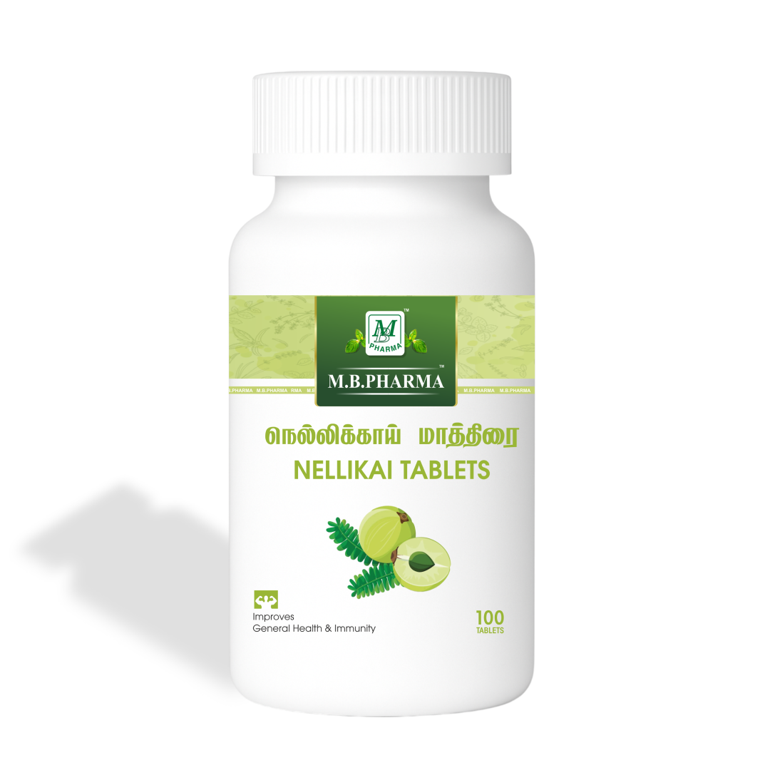 M.B. Pharma Nellikai Tablets – Herbal tablets made from the fruit of the Indian gooseberry (Amla).